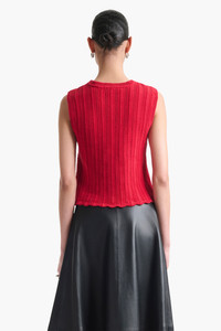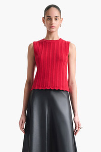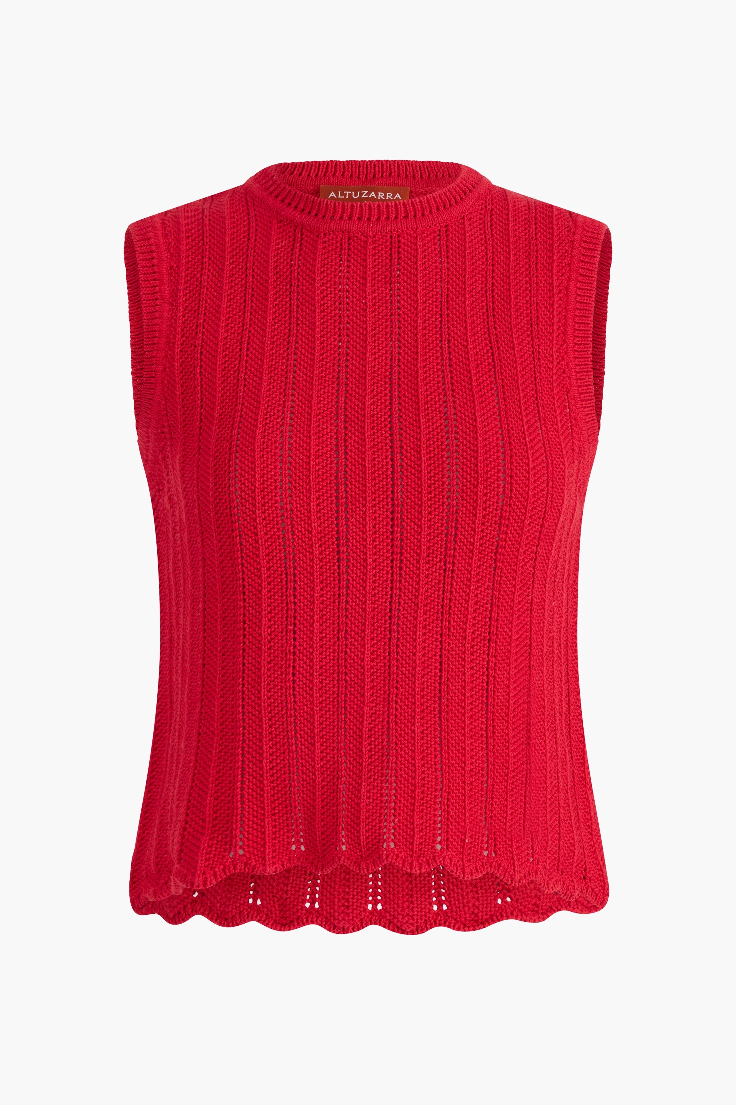 The Zabou top is knitted from cotton with a ripple stitch finish and a breathable open construction. Note the scallop-trimmed hem bringing a feminine touch. Details '-100% Cotton -Imported