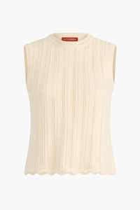 The Zabou top is knitted from cotton with a ripple stitch finish and a breathable open construction. Note the scallop-trimmed hem bringing a feminine touch. Details '-100% Cotton -Imported