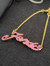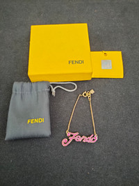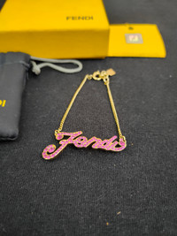 Fendi Bracelet Pink spell-out rhinestone necklace with box