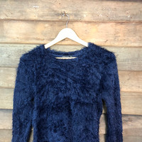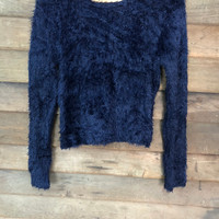 Bershka - Barshka D.Blue Shag Shaggy Fur Mohair Knitwear #6965