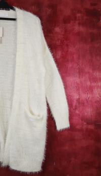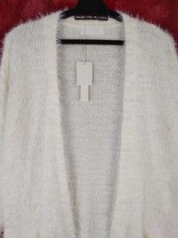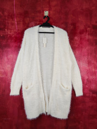 Cardigan - abc une face Ivory Shag Shaggy Fur Mohair Cardigan #S805