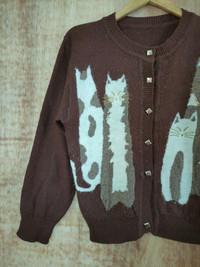 Cardigan - Cat brown cardigan knitwear streetwear #46-477