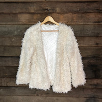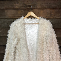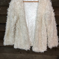 Cardigan - GRL White Shag Shaggy Fur Mohair cardigan Knitwear #7004