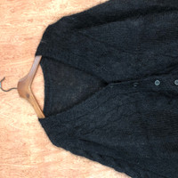 Cardigan - Japan mohair shag shaggy knitwear Black Cardigan #c505