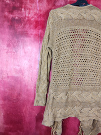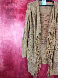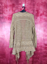 Cardigan - Japanese Brand Brown crochet meshnet Cardigan #5184