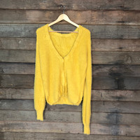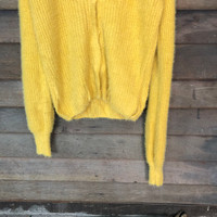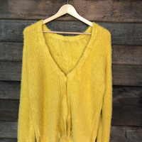 Cardigan - Spiral Girl Yellow Shaggy Fur Mohair Cardigan knitwear #6980