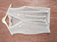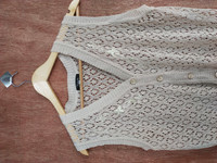 Cardigan - Venticelle cream crochet meshnet sleeveless cardigan #S173