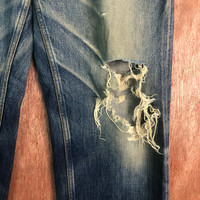 Distressed Denim - Japan Blue distressed Denim Pants like kurt cobain #c163