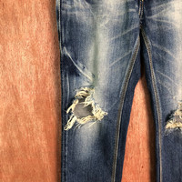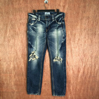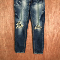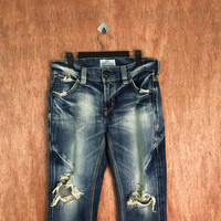 Redeo Crows Blue Distressed Denim # 6353 [MEASUREMENT] Actual Size manual measurements Inseam ~ 27" in Outseam ~ 36" in Leg opening ~ 6" in (12") Waist ~29" in Front Rise ~ 9" in [CONDITION] -Used good condition (as per picture) [SHIPPING] -Item will be shipped in 1-3 working days after payment received. 💥Buy combo to get special price Thank you for visiting #6353