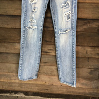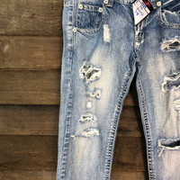 Distressed Denim - Wiffy& Pitty Blue Distressed Denim Pants #4979
