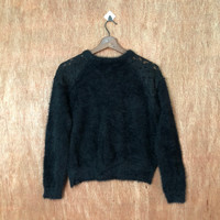Homespun Knitwear - GU black Shag Shaggy Fur Mohair Knitwear #6393