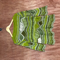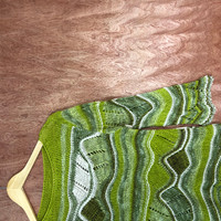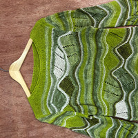 Homespun Knitwear - Japan Green crochet mesh net Knitwear art vintage wave #c524