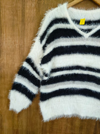 Homespun Knitwear - Japan Stripe mohair shag shaggy soft fur knitwear #46-1017