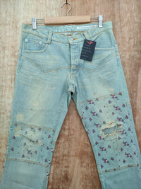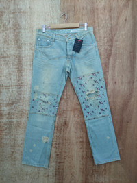 Designer Sunao Kuwahara Designer Profile 1979 Graduated from Vantan Design Institute 1989 Joined MIYAKE DESIGN STUDIO 1994 Moved to ISSEY MIYAKE INC. Became chief designer for I.S. brand and Launched I.S. Sunao Kuwahara brand 1996 Moved to A-net Inc. 2003 Changed brand name to sunaokuwahara in spring/summer season Displayed first sunaokuwahara collection in spring/summer 2014 Resigned from A-net Inc. 2015 Established SUNAOKUWAHARA DESIGNS 2016 Went independent as sunaokuwahara in spring/summer and established SUNAOKUWAHARA DESIGNS inc. Sunao Kuwahara japan designer distressed denim pants #46-XX3 [MEASUREMENT] Actual Size manual measurements Inseam ~ 30" in Outseam ~ 38" in Leg opening ~ 8" in (16") Waist ~30" in Front Rise ~ 8" in [CONDITION] -Used good condition (as per picture) [SHIPPING] -Item will be shipped in 1-3 working days after payment received. 💥Buy combo to get special price Thank you for visiting #46-XX3