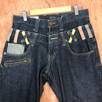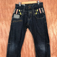 Japanese Brand - Double Waist Dominate Handcrafted Dark Blue Jeans #c614