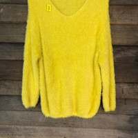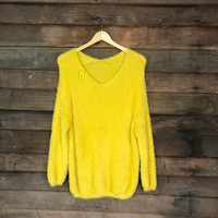 Japanese Brand - Gu Yellow Shag Shaggy Fur Mohair Knitwear #B580