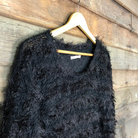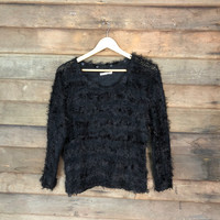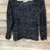 Japanese Brand - Lady Bird Black Stripe Shag Shaggy Fur Mohair Knitwear #6995