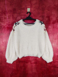 Japanese Brand - Majestic Legon White Shag Shaggy Fur Mohair Knitwear #B591