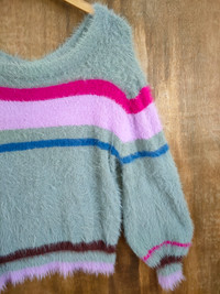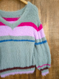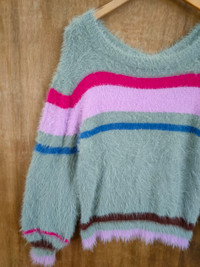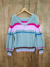 Japanese Brand - Muse stripe rainbow mohair shaggy fur knitwear #46-989