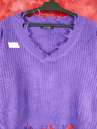 Japanese Brand - Non-hedge Purple ripped distressed Knitwear Crop Tops #235B