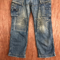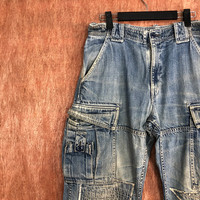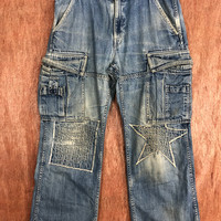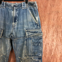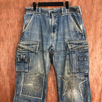 Japanese Brand - Over The Stripes Blue patchwork distressed Denim Jeans #c632