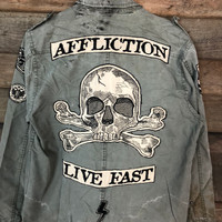Skulls - Affliction Skulls Green Light Jacket army #2830