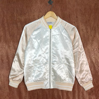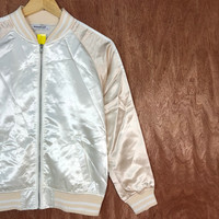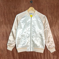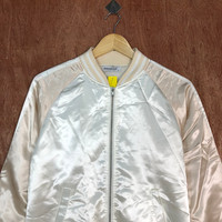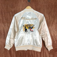 Vintage - Browny White tiger embroidered Varsity Jacket #1692