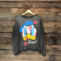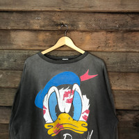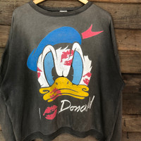 Vintage - Disney I Love Donald Grey Faded vintage Sweatshirt #4754