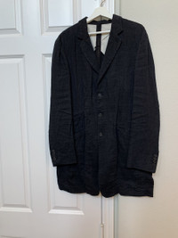 Size 50 Barely worn <4x 97% linen 3% cotton Shoulders 18 Chest 22 Length 38 Sleeves 27 Wonderful piece by goeun at forme perfect for fall. Sleeve and yoke lining Beautiful fabric and pocket design