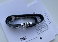 Limited edition Authentic Dior Bracelet clever charm dark blue rare VIP GIFT! Measurement: Total length is 38cm. Chain length 5cm. Two leather parts 21.5cm and 6.5cm. Width of the leather part is 1cm.