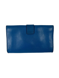 こんにちは Hello! Manual Measurement : Width - 11 inch Height -6.5 inch Depth - 1 inch Highlights : -blue color -leather material -logo plaque -gold tone hardware -foldover top with magnetic fastening -internal slip pocket POSITIVELY CONSCIOUS: Purchasing this item continues it’s narrative and reduce the environmental impact of using new resources. You can be confident that you are making a better choice for the planet.