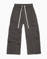 The Heavyweight Cropped Relaxed Pant in vintage black by Les Tien is crafted in the USA from 100% heavyweight cotton fleece. Featuring gold-plated eyelets and cobrax grommets, it offers a relaxed fit that sits at the waist. The vintage brushed fabric is laundered, pre-shrunk, and garment dyed for durability. It includes cotton drawstrings with an internal closure and a wide open bottom hem for comfort and style. CF-3079