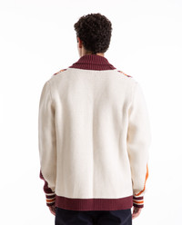 Helena Shawl Collar Knit sweater in muslin by Malbon. The ribbed collar, placket, hem, and pocket add a touch of sophistication to this cozy piece. With a 4 button closure and a signature M logo embroidered on the left pocket. The intarsia knit pattern throughout the body and sleeves adds a unique touch to this must-have item. Store ID: C-M-8309-MSL Model is wearing size: M Model is: 5'11", Chest 42", Waist 32" 100% Cotton Wash Cold Imported