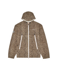 Relaxed-fit Highland Jacket designed for unpredictable weather. Dual zippered pockets and a 2-way front zipper with storm flap provide practical storage and protection. Elastic waist and cuffs with adjustable button details ensure a customized fit, while the drawcord hood adapts to changing conditions. All-over print on durable nylon-polyester blend. Fabrication: 95% nylon 5% polyester