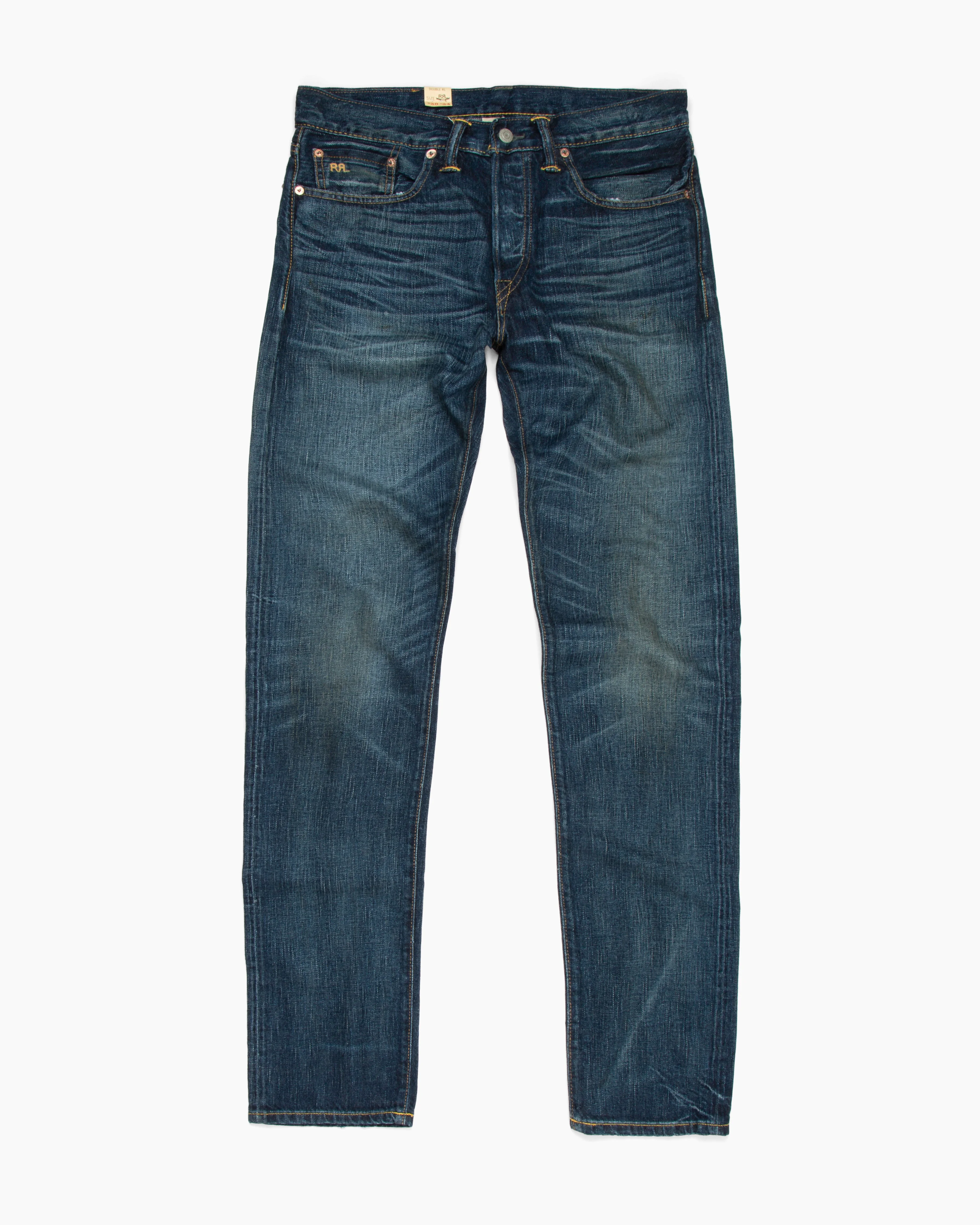 Slim Fit Selvedge Jean in crest blue wash by RRL. Slim fit and a medium rise, five-pocket styling. Leather "RRL"-debossed logo label at the back right waist. Store ID: 782840626001 Model is wearing size: 32 Model is: 6'2", Chest 40", Waist 32" 100% Cotton Wash Cold Made in the USA