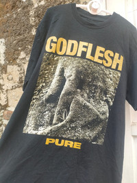 Godflesh - Pure Large Black colour shirt Still very good conditions Doublestich up and down the shirt No hole no flaws Cracking on print PLEASE CHECK ALL THE PICTURES THATS ALL THE CONDITIONS OF THE SHIRT #bandtees #vintage #veryrare