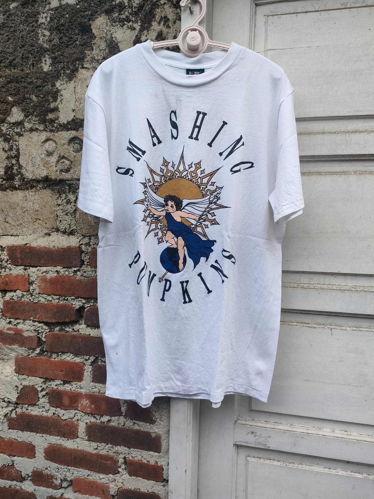 Smashing pumpkins Large White colour shirt Still very good conditions Doublestich up and down the shirt No hole no flaws Cracking on print PLEASE CHECK ALL THE PICTURES THATS ALL THE CONDITIONS OF THE SHIRT #veryrare #vintage #bandtees