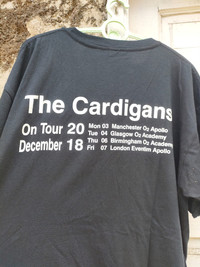 The Cardigans XLarge Black colour shirt Still very good conditions Doublestich up and down the shirt No hole no flaws Cracking on print PLEASE CHECK ALL THE PICTURES THATS ALL THE CONDITIONS OF THE SHIRT #veryrare #vintage #bandtees