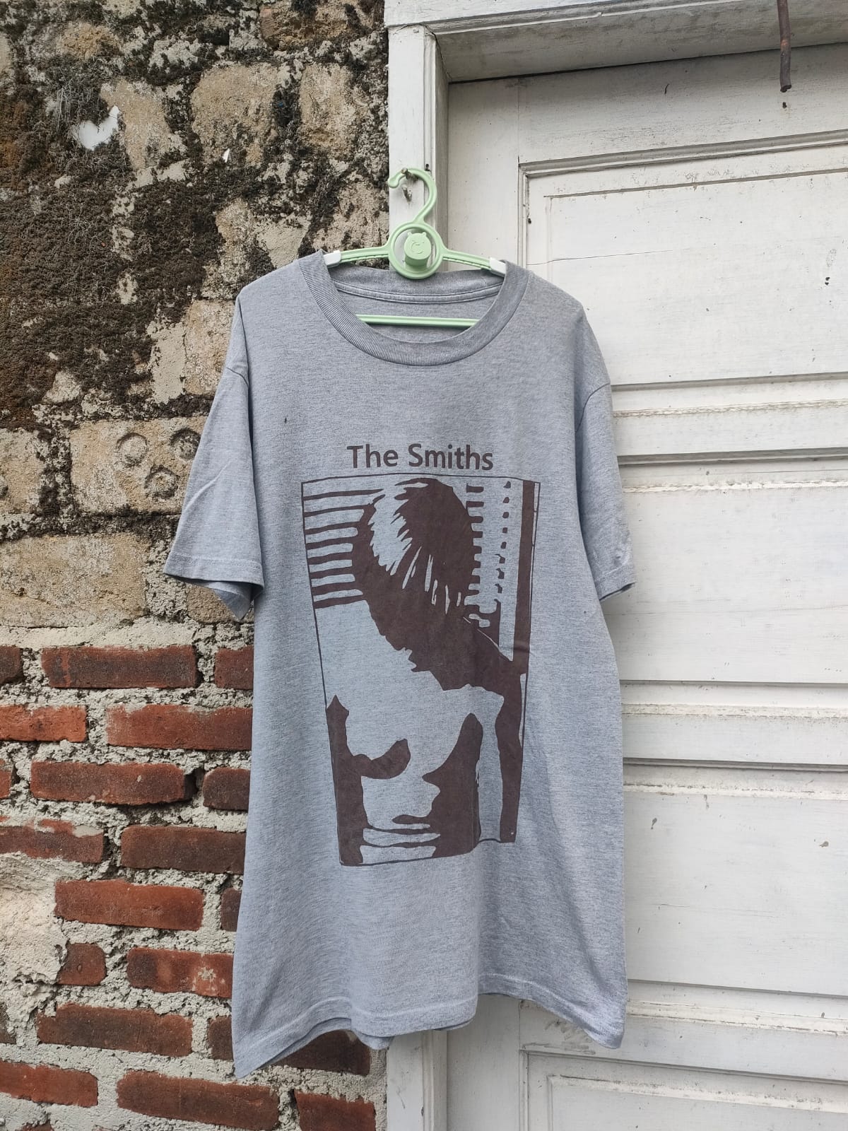 The Smith Large Gray colour shirt Still very good conditions Doublestich up and down the shirt No hole no flaws Cracking on print PLEASE CHECK ALL THE PICTURES THATS ALL THE CONDITIONS OF THE SHIRT #bandtees #vintage #veryrare
