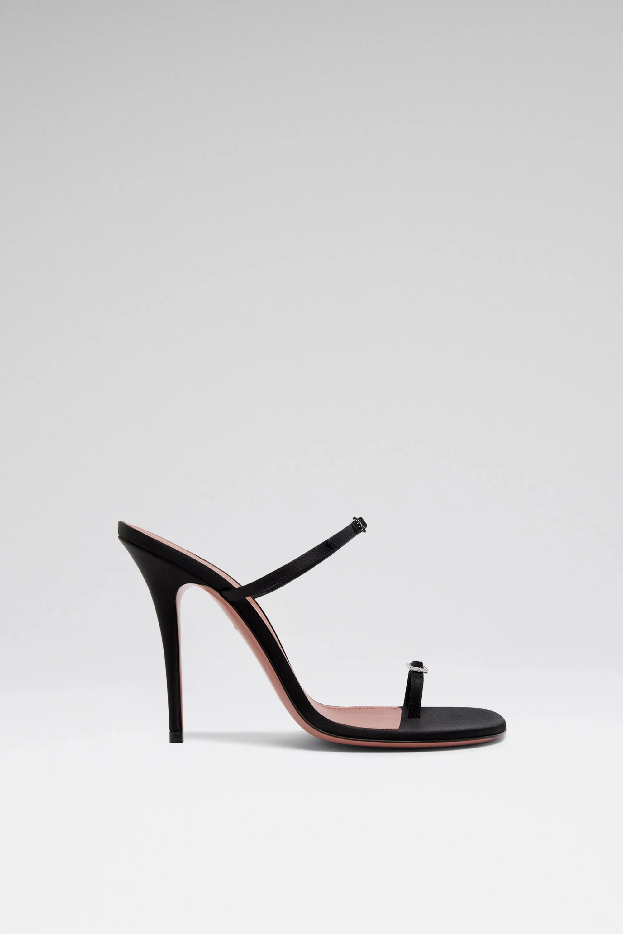 Adut Thong Slipper 105 Black Satin And White Crystal Buckle - 105mm SM Heel - Thong Strap - Rounded toe - White Crystal Buckle Composition - Upper: 100% Satin - Lining: 55% Satin and 45% Kid Lining - Sole: 90% Calfskin and 10% TPU Origin Made in Italy
