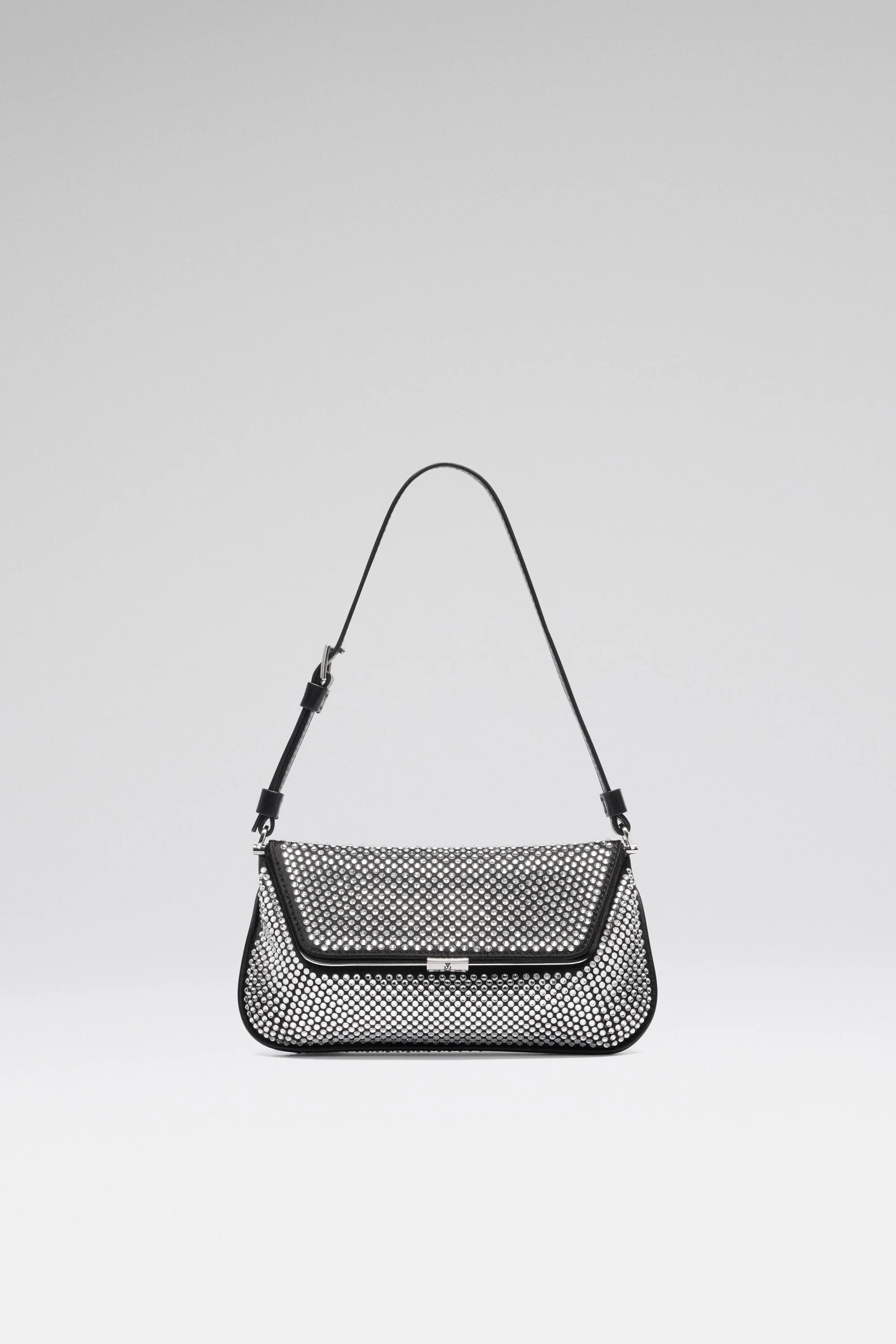 AMI MINI CRYSTAL BLACK SATIN AND WHITE CRYSTALS