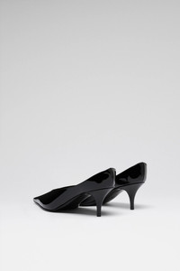 Anok Mule 55 Black Patent - 55mm Stiletto Heel - Pointed toe - Style of a mule with the structure of a pump Composition - Upper: 100% Laminated Calfskin - Lining: 100% Kid Lining - Sole: 90% Calfskin 10% TPU Origin Made in Italy
