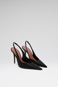 Anok Sling 105 Black Satin - 105mm SM Heel - Pointed toe - Fits true to size Composition - Upper: 100% SILK - Lining: 100% GOATSKIN - Sole: 70% Leather and 30% Rubber Origin Made in Italy