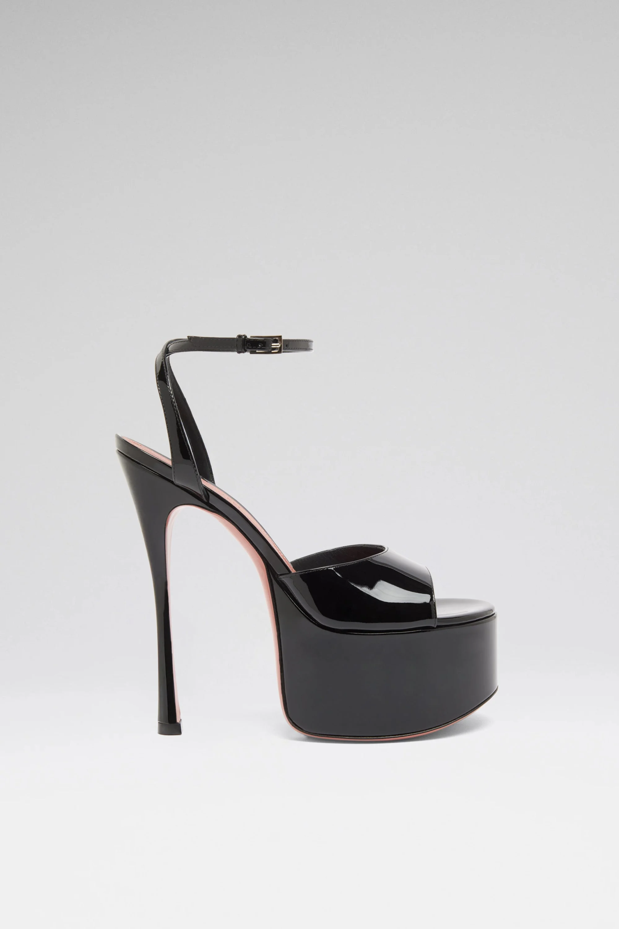 Aya Sandal 155 Black Patent And Silver Buckle - 155mm Heel 60mm Plateau - Buckle ankle strap - Rounded toe Composition - Upper: 100% Calfskin - Lining: 80% Kid Lining and 20% Calfskin - Sole: 90% Calfskin and 10% TPU Origin Made in Italy
