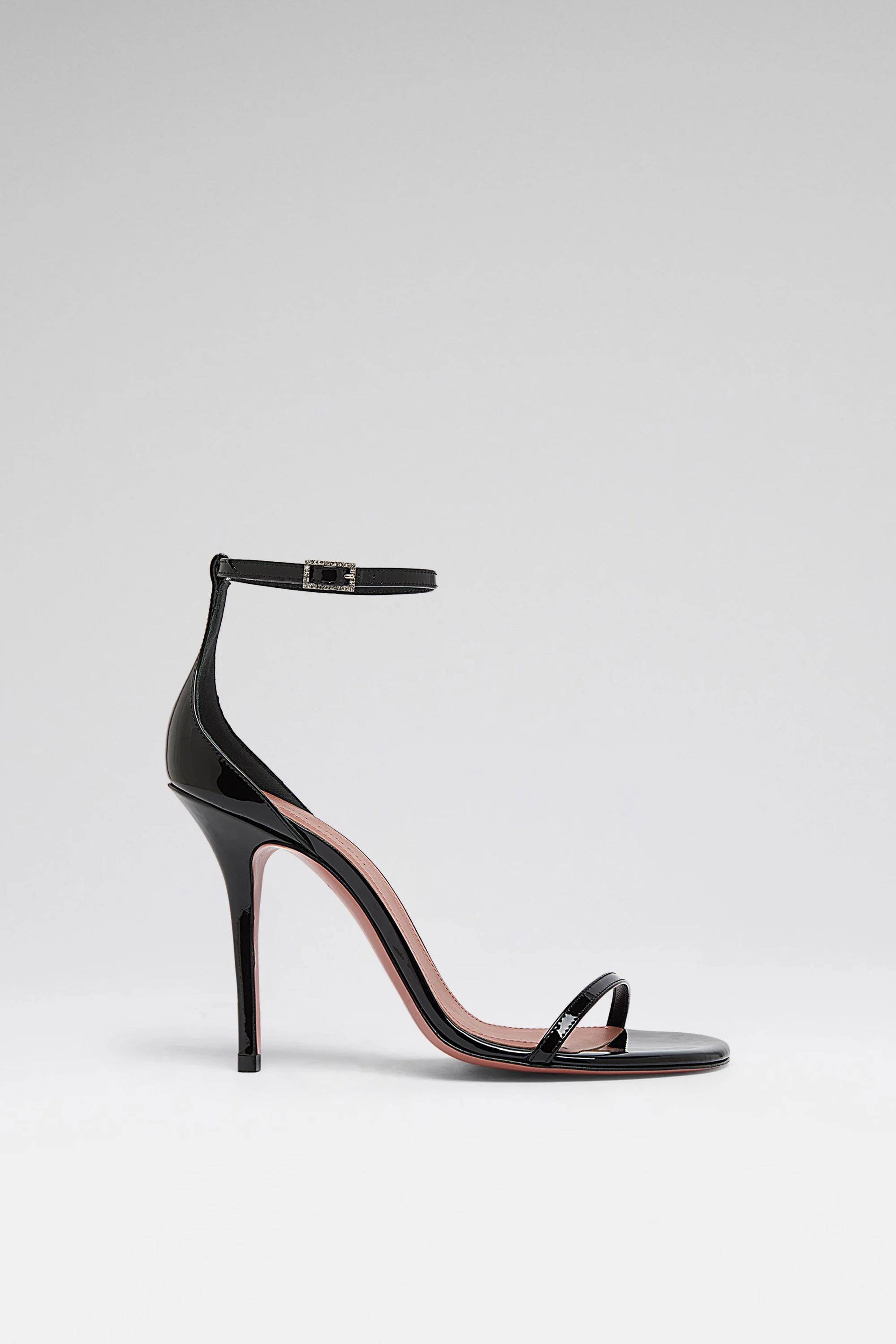 BARBARA SANDAL 105 BLACK PATENT AND WHITE CRYSTAL BUCKLE