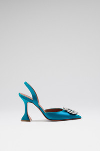 Begum Sling Azur Satin - 95mm CL Heel - Starbust embellished brooch - Pointed toe - Fits small: we recommend one size up Composition - Upper: 100% Silk - Lining: 100% Goat - Sole: 70% Leather and 30% Rubber Origin Made in Italy