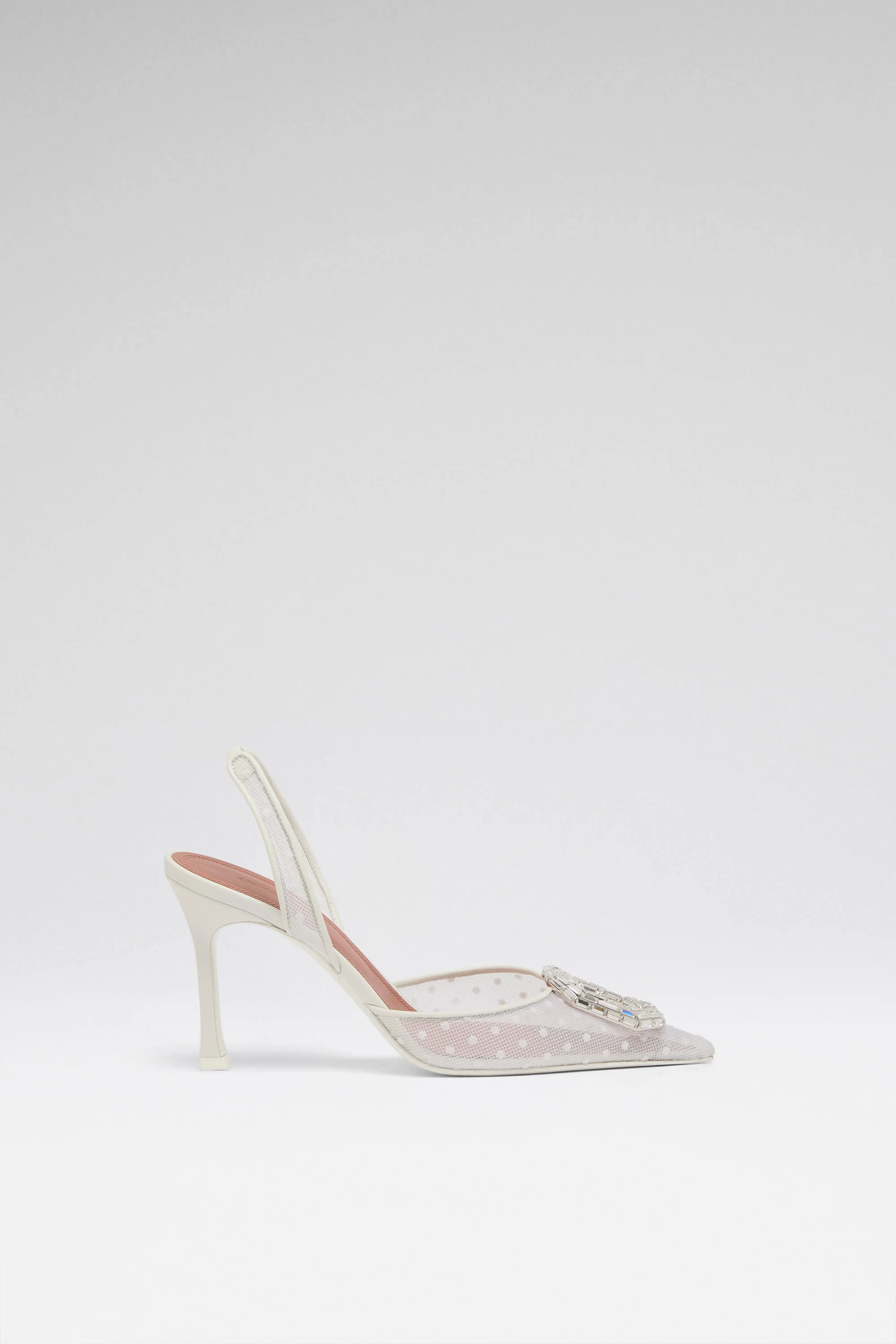 CAMELIA SLING 90 WHITE POLKA-DOT LACE