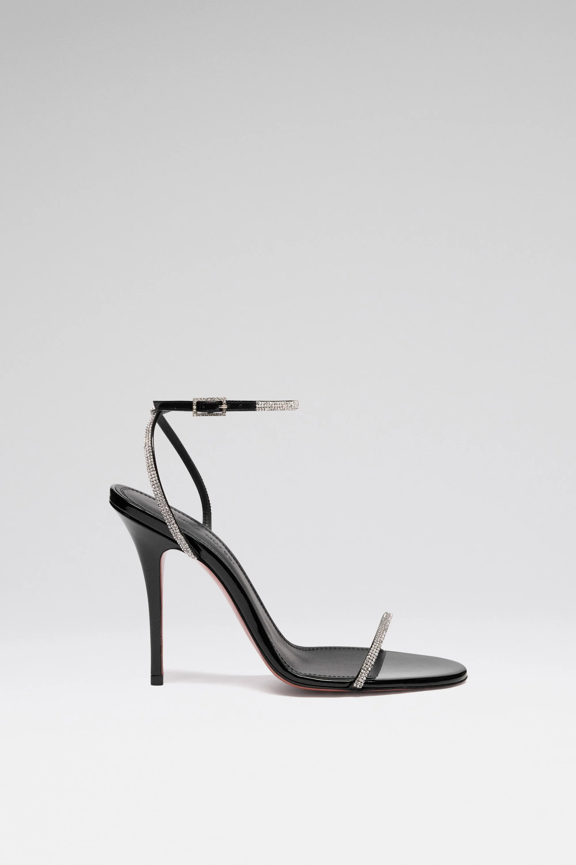 Diamante Sandal 105 Black Patent And White Crystals - 105mm Heel - Crystal strap - Softly rounded open-toe design - Fits true to size Composition - Upper: 100% CALF LEATHER - Lining: 100% GOATSKIN - Sole: 90% LEATHER AND 10% TPU Origin Made in Italy