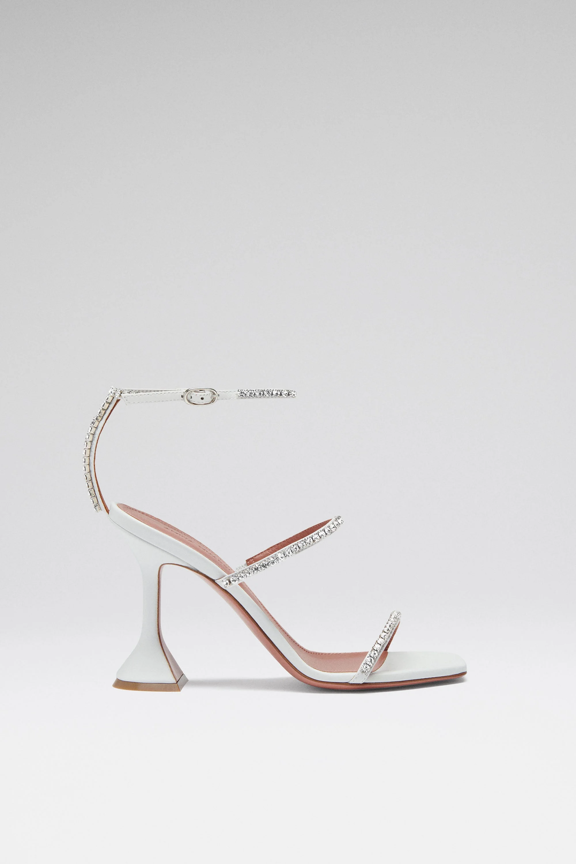 Gilda Sandal White Nappa and White Crystals - 95mm CL Heel - Crystal embellished straps - squared toe - Fits slightly small to size - we recommend a half size larger Composition - Upper: 100% LAMBSKIN - Lining: 100% Goat - Sole: 70% Leather and 30% Rubber Origin Made in Italy