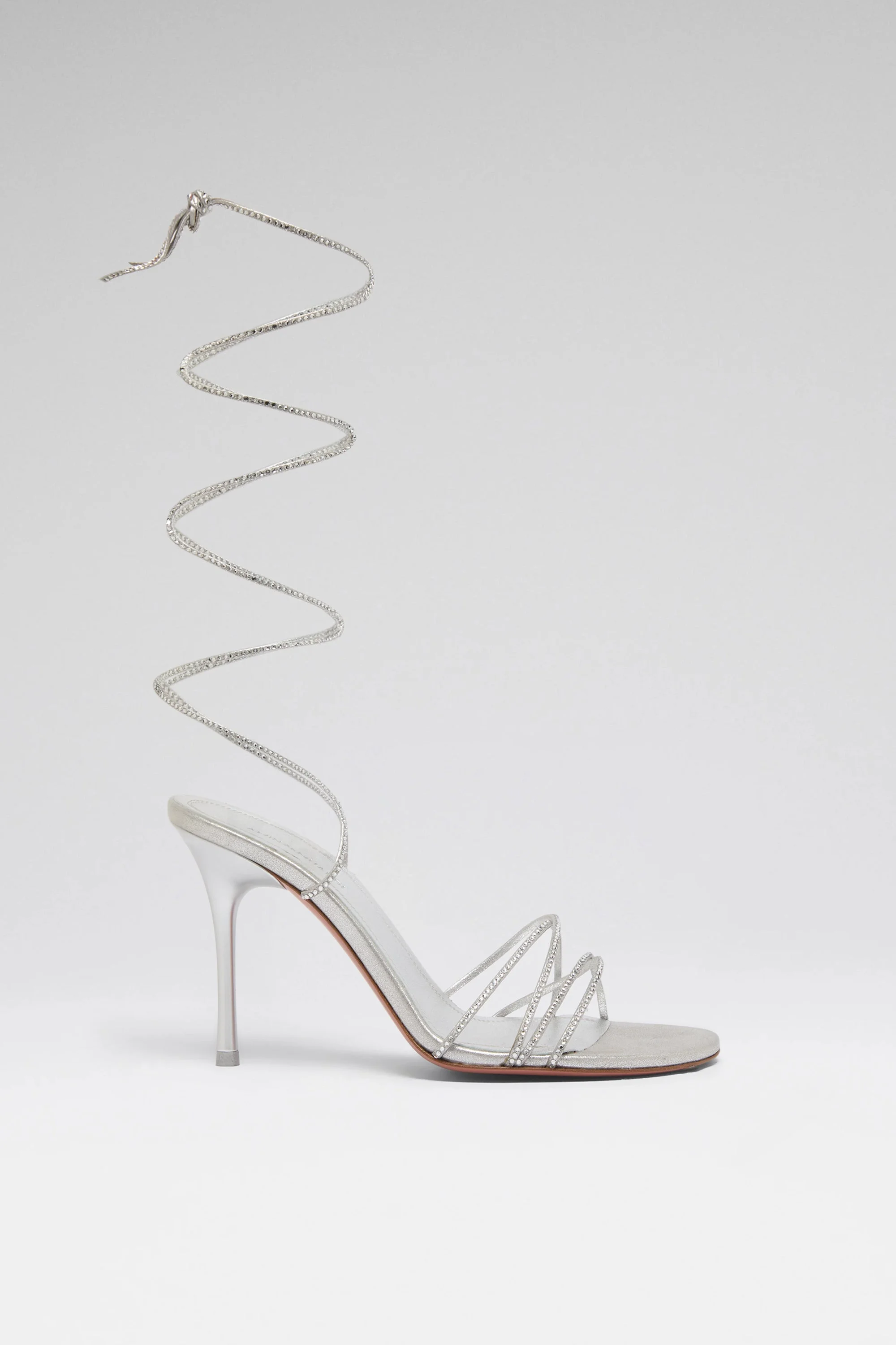 Lori Crystal Lace Up 95 Silver Suede And White Crystals - 95mm Rounded Heel - Lace up crystals straps - Rounded toe - Fits true to size Composition - Upper: 100% Goat - Lining: 100% Goat - Sole: 100% Calfskin Origin Made in Italy